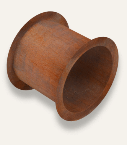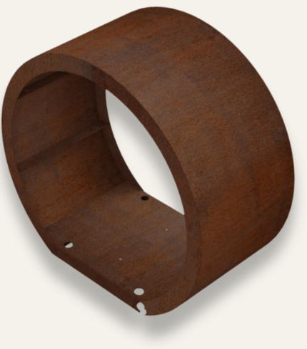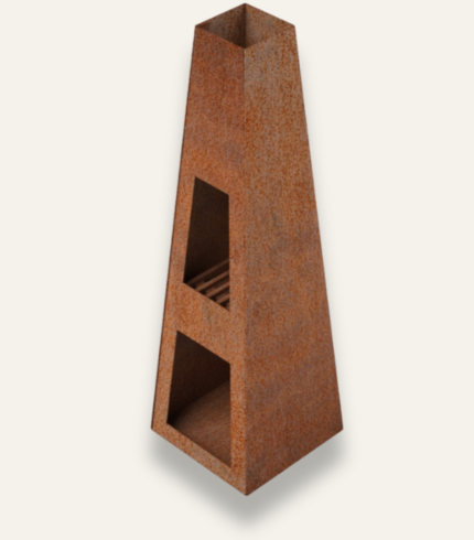 The Aksja Corten Steel Fireplace stands out with its round shape, creating a modern and unique look.