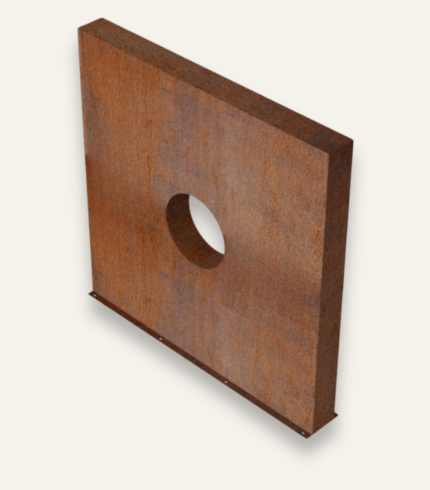 The Aksja Corten Steel Fireplace stands out with its round shape, creating a modern and unique look.