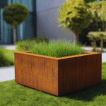 This luxurious Corten steel piece, featuring a rectangular shape and a unique rust-like patina, serves as a striking decorative accent.